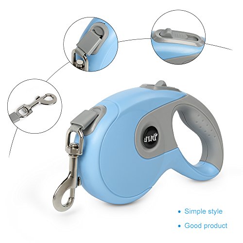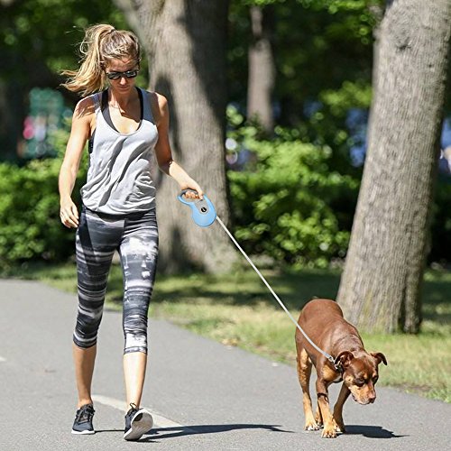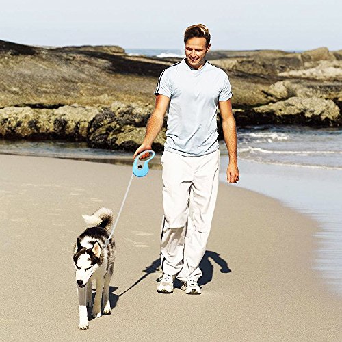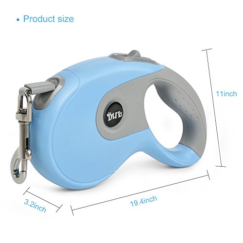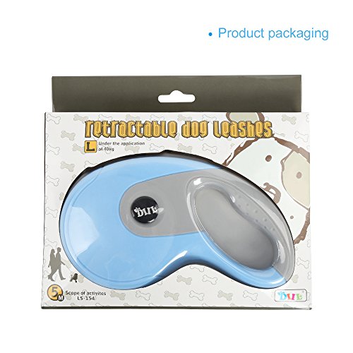 Specifications: Name:Retractable dog leash Color:Blue Net weigh: 12.5 ounce Shell material:ABS plastic Rope material:Nylon Adjustable length:Extends up to 16.5ft Size: Large, supports up to 90 pounds-heavy duty