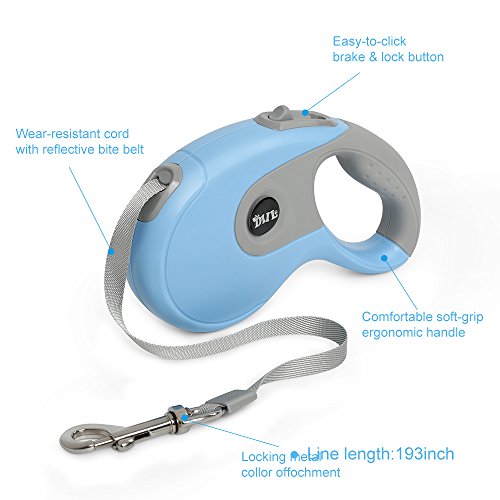 Features: *Durable Material-the 16 Ft Durable Nylon Ribbon gives plenty of space for you and your dog to enjoy a safe walk. *Safety System-One Button Brake Lock and Easy Instant Retraction,No Tangle! *Ergonomic Design-The Anti-slip Handle can help you comfortably maintain a strong grip when the dog run about madly.