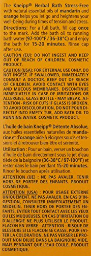 -. Binding : Health and Beauty -. Brand : Kneipp -. EAN : 4008233119205 -. Feature : Soak away worries and troubles with Kneipp Stress Free Herbal Bath / Containing natural Mandarin and Orange essential oils to support overall wellbeing and steady the nerves / Breathe in the beautiful aroma and help say goodbye to those everyday stresses / Kneipp® is a completely natural body and skincare brand, from head to toe / For approx. 10 full baths -. IsAdultProduct : 0 -. Label : Kneipp -. Manufacturer : Kneipp -. Model : KP110 -. MPN : KP110 -. PackageQuantity : 1 -. PartNumber : KP110 -. ProductGroup : Beauty -. ProductTypeName : HEALTH_PERSONAL_CARE -. Publisher : Kneipp -. Size : 3.4 Ounces -. Studio : Kneipp -. Title : Kneipp Herbal Bath 100ml/3.4 oz Stree Free Bath -. UPC : 799457712290