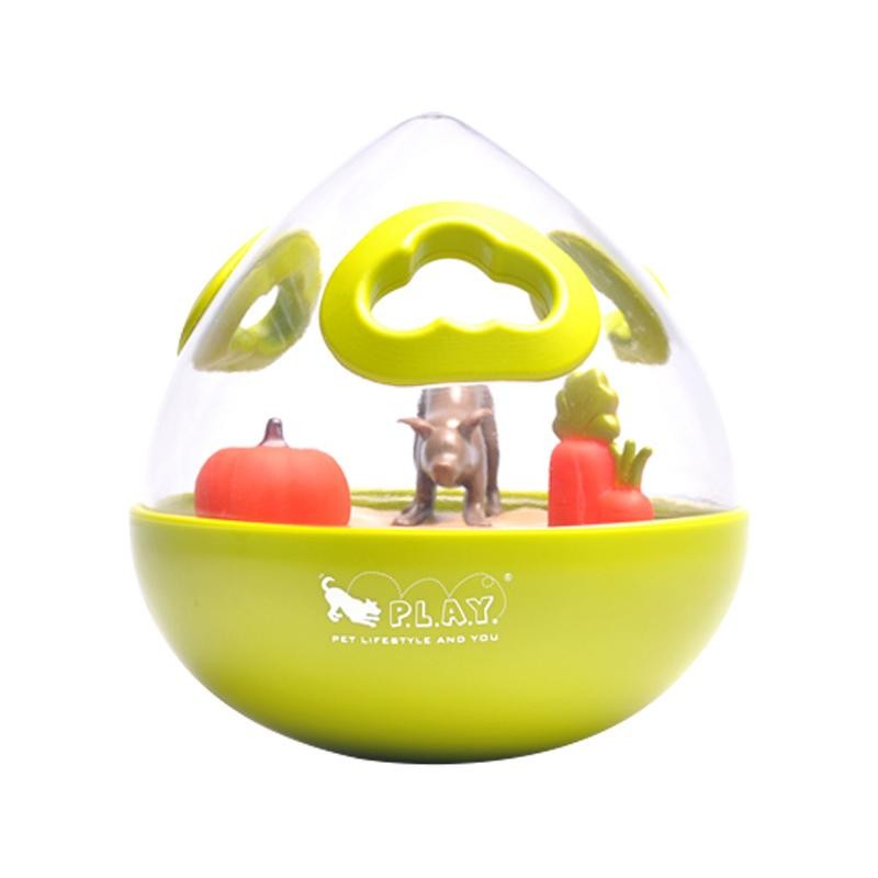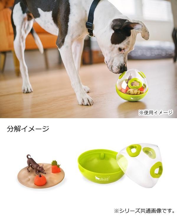 | どの方向へ転がるか分からない、卵の形をしたちょっとユニークなおもちゃ。本体内部におやつを入れ、上手に転がす事ができればおやつをゲット!!強化プラスチックを採用した本体は割れにくく、取り出し穴から歯を立てて噛まれても大丈夫。長時間遊ばせてあげられます。ボール底部分はストック容器にもなっています。 |