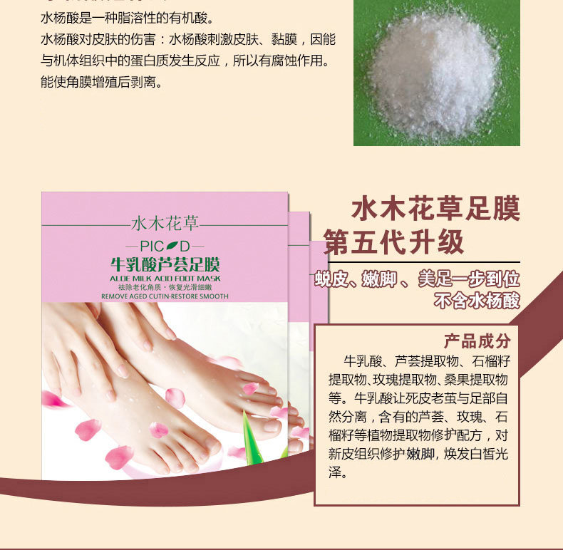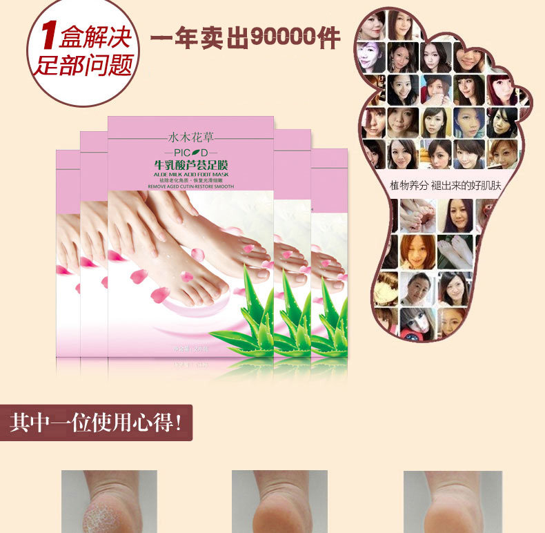 - Origin: China shelf life: 3 years function: moisturizing exfoliating scrub to nourish the skin moistening calluses cracking cosmetics net content: 20mL: Brand Name: acid aloe milk and water foot mask specifications type: normal specification for skin: any skin