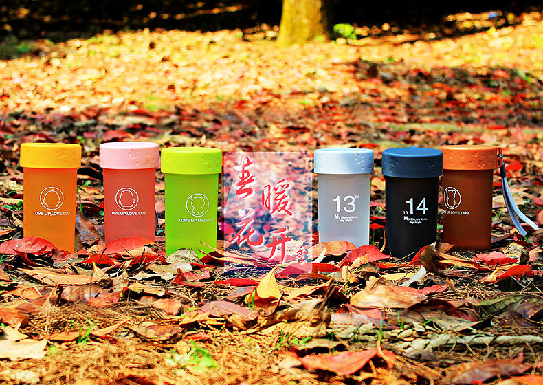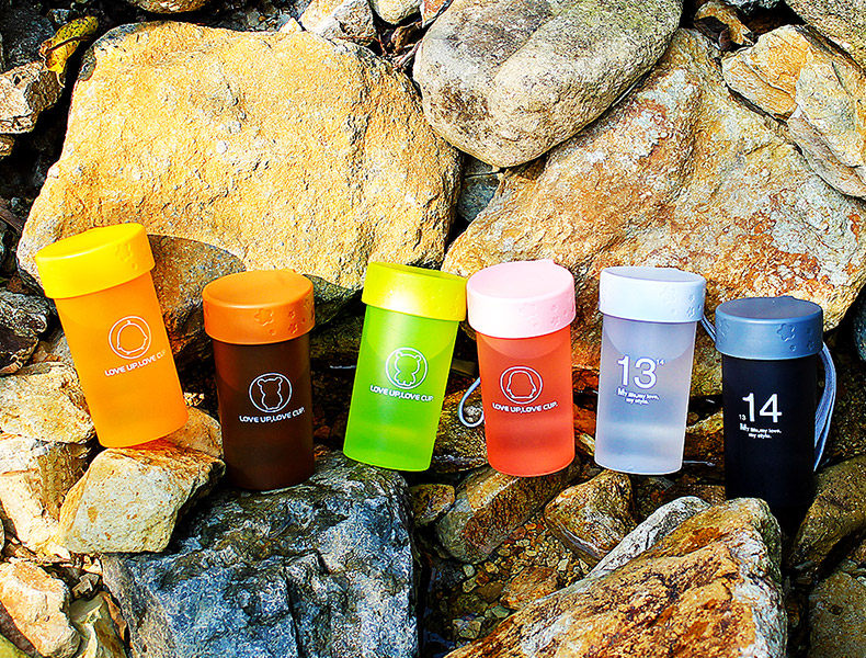 创意带盖便携杯子 可爱儿童塑料杯 男女情侣小水杯330ml