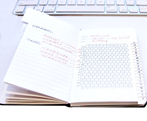 -. Feature : PREMIUM QUALITY: Hardcover 176 pages with saddle stitch binding allows to open flat / ANONYMOUS: Removable label makes it discrete and anonymous / MAXIMUM SECURITY: 78 Different password grids / Invisible ink marker and UV light keychain / COMPLETE SET: Elastic closure, expandable inner pocket, plastic password grid card, gift box