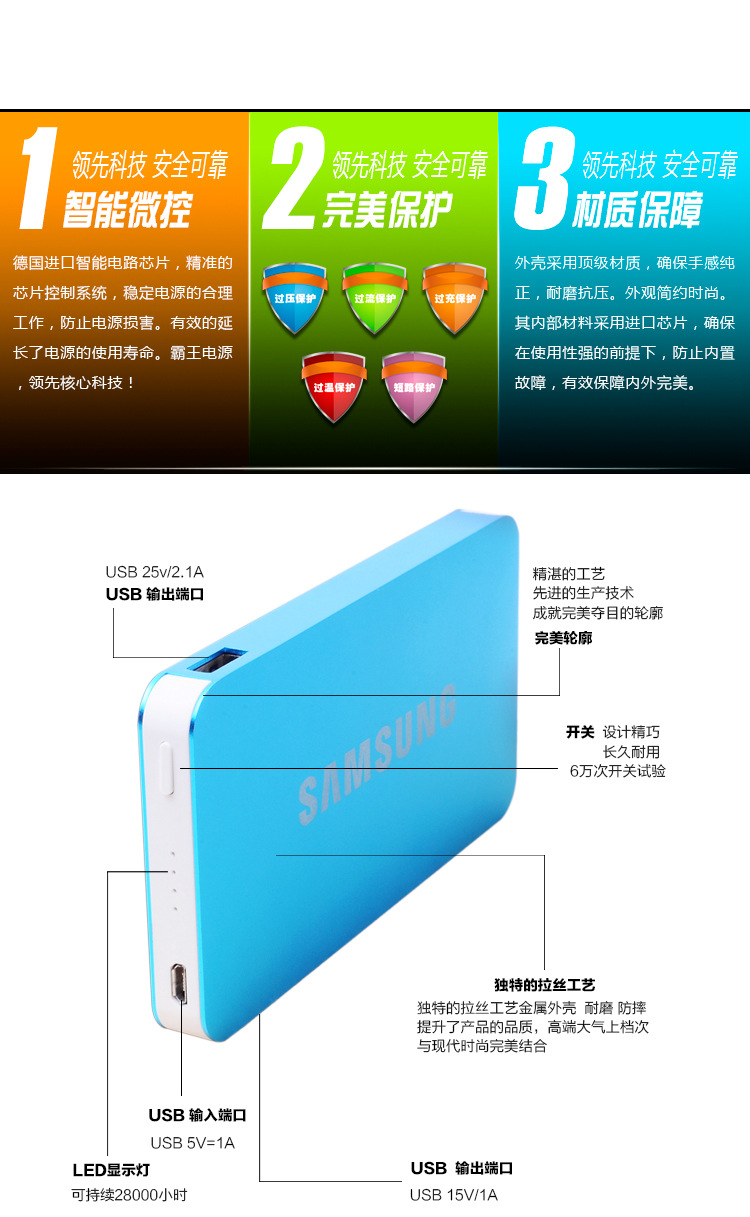 - 20000mAh capability, powerful with long operation time