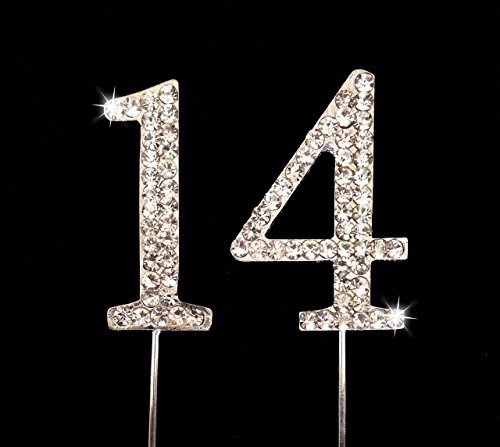 14th Birthday Number Cake Topper with Sparkling Rhinestone Crystals - 1.75