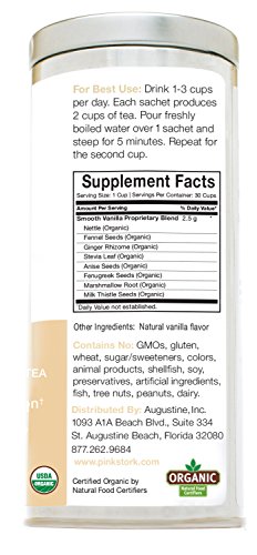 100% ORGANIC & NON-GMO HERBS FOR BREASTFEEDING SUPPORT: Just like Pink Stork's other products, Lactation Tea contains only the highest quality Non-GMO and organic herbs available. Enjoy large servings of Vanilla, Nettle, Fennel, GInger, Anise, Fenugreek, Marshmallow Root and Milk Thistle in a delicious blend that's delicious hot or cold.