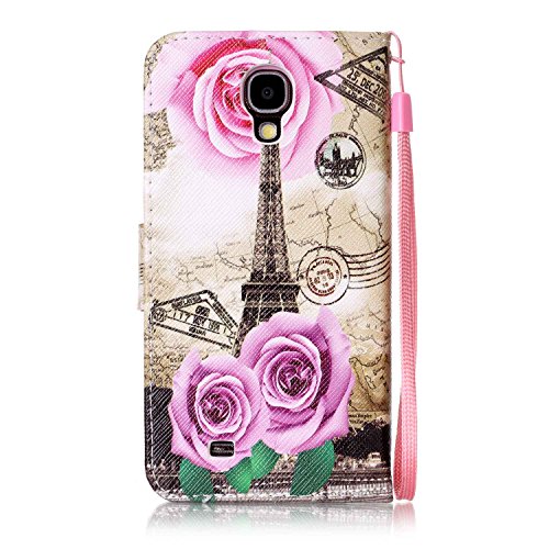 Galaxy S4 Case,Galaxy S4 Cover,ikasus Colorful Art Painted PU Leather Fold Flip Wallet Case Cover Stand Card Slots Protective Case Cover for Samsung Galaxy S4 i9500,Flower Rose Eiffel Tower