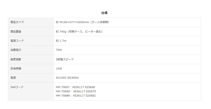 ●商品重量:約740g(収納ケース、ビーター含む)
