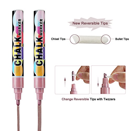 - PLEASE BE ADVISED - Our Chalkboard Markers Erasable work perfectly with bright and vivid colors on ALL non-porous surfaces. SOME CHALKBOARDS MAY NOT BE SUITABLE FOR THE USE OF CHALK MARKERS, so it's recommended to try them first on small areas and always follow the cleaning instructions provided. We have developed new Rose Gold, Gold and Silver ink that comes off chalkboards. CHALK MARKERS DO NOT COME OFF CHALK PAINT.