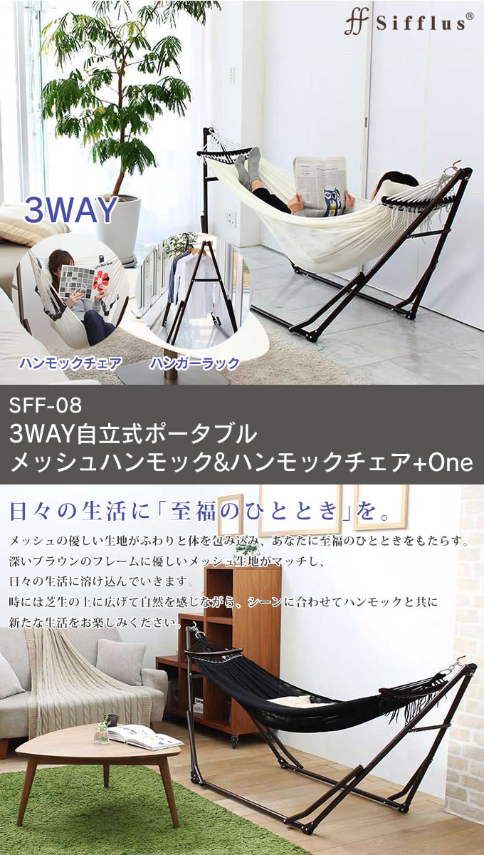 | 商品名 | Sifflus(シフラス)3WAY自立式ポータブルメッシュハンモック&ハンモックチェア +One オマケ付き 品番:SFF-08 |