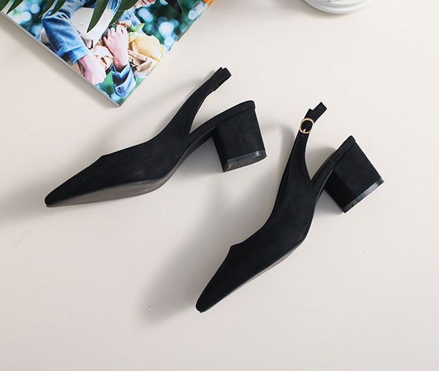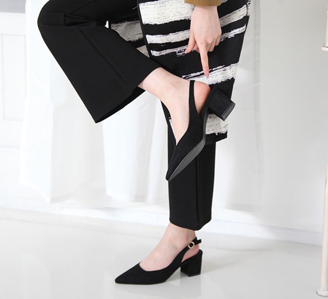 商品名:パンプス レディース チャンキーヒール 太ヒール スリングバック ポインテッドトゥ 2017 秋 冬 ファッション 靴 婦人靴