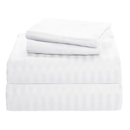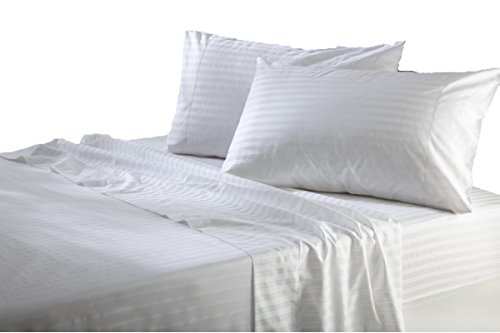 Thread Spin Hotel Collection 800 Thread Count Egyptian Cotton 18" inches Deep Pocket Sateen Cal King 4 Piece Sheet Set White Stripe