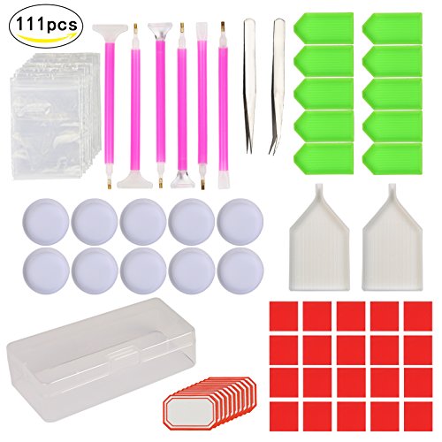 Diamond Painting Tools,SEELOK 111 Pcs DIY Cross Stitch Tool Set Embroidery Sewing Accessories With Quick Point Pen,Glue,Plastic Tray,Tweezers,Bags and Storage Box for Art Crafts