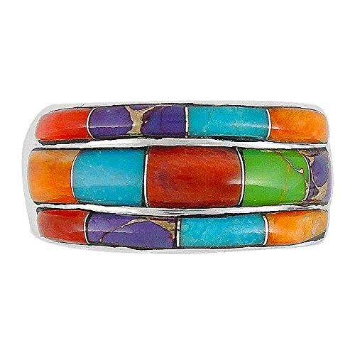 -. Title : 925 Sterling Silver Ring Genuine Turquoise & Semiprecious Gemstones Sizes 5 to 12