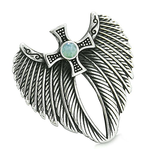 -. Binding : Jewelry -. Brand : BestAmulets -. Color : Green -. Department : womens -. Feature : Best Amulets® Collection. Very Unique and Special Double Angel Wings and Celtic Viking Cross Amulet. / Amulet Size: 35mm X 35mm / Amulet is Made from Stainless Steel and holds Cute Cabochon. / Ready to Wear with Very Popular Stainless Steel Link Style 18 Inch Chain Necklace / Comes with Gift Kind Packaging -. Label : BestAmulets -. Manufacturer : BestAmulets -. Model : AMG-ANGEL7 -. MPN : AMG-ANGEL7 -. PartNumber : AMG-ANGEL7 -. ProductGroup : Jewelry -. ProductTypeName : FASHIONNECKLACEBRACELETANKLET -. Publisher : BestAmulets -. Studio : BestAmulets -. Title : Angel Wings Celtic Viking Cross Magic Powers Amulet Green Quartz Pendant 18 inch Necklace