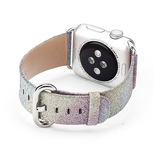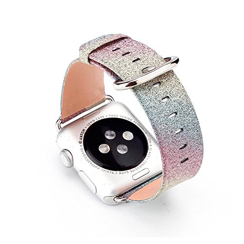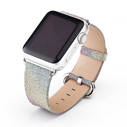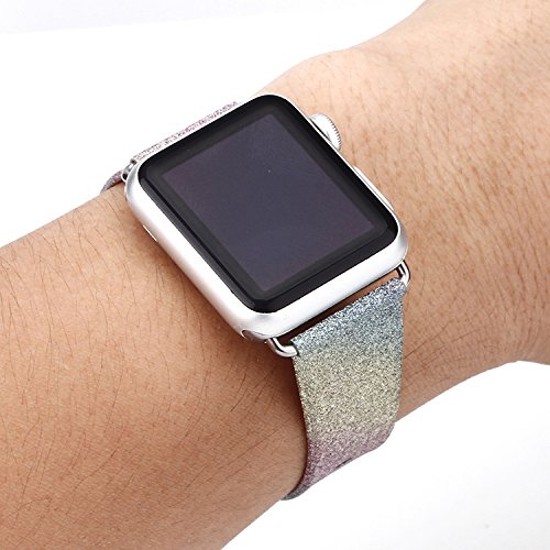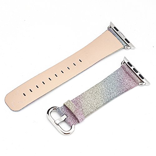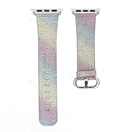 For Apple Watch Band Series 2 Series 1, Leather Flash Glitter Bling Band Wristband Strap Replacement Band for Apple iWatch Band/Sport/Edition (38---Rainbow strap)
