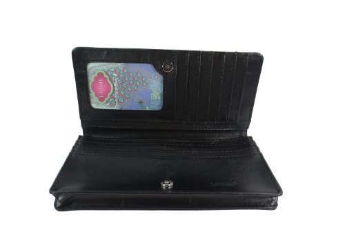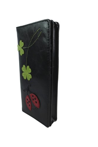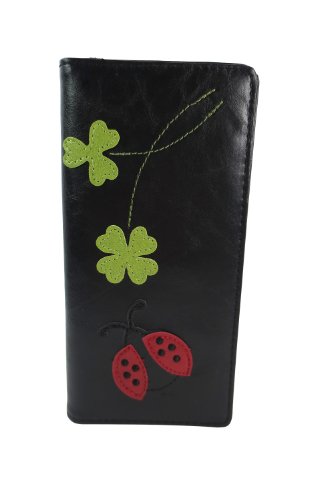 Binding : Apparel Product Description Add some cuteness to your purse with this large vegan wallet by LAVISHY! Features a slightly textured faux leather exterior adorned with a cute applique ladybug and clovers. The interior is spacious and features 12 card slots, 2 tuck pockets, a roomy pocket for checkbook and cash, an I.D. window, and a small zippered coin pouch for change. There is also a magnetic snap closure to keep everything in place. 0