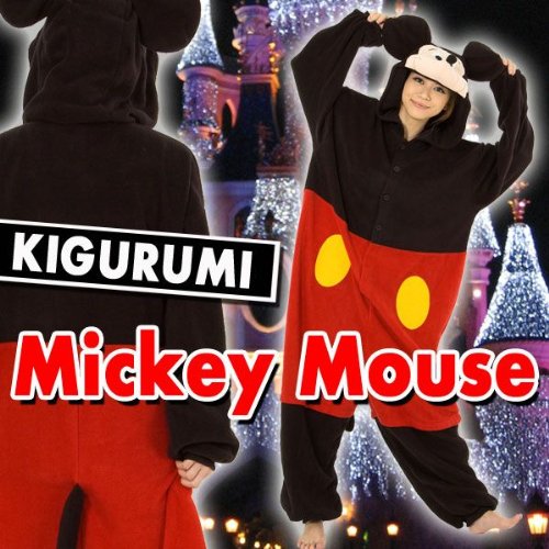 -. Feature : 100% Polyester / Soft, black button up jumpsuit / Attached tail and red shorts with yellow buttons / Mickey Mouse's face and ears attached to the hood