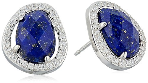 Sterling Silver Genuine Lapis Lazuli and White Cubic Zirconia Stud Earrings