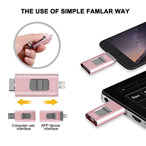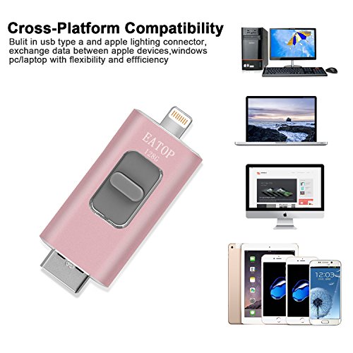 USB Flash Drives for iPhone 128GB Pen-Drive Memory Storage,EATOP External Storage Memory Stick Adapter Expansion for iPod / iPhone / iPad / Android & Computers (Pink)