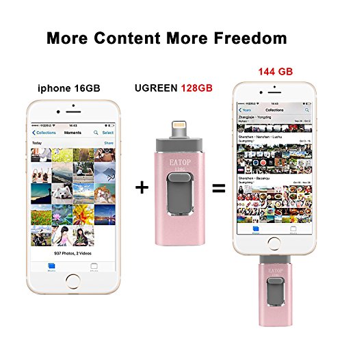 【The reservoir of fast】Amazing transfer speed using its dual 8-Pin and standard USB connector, 128GB external memory expansion, quickly free up memory and allows you to watch movies on USB and your iPhone/iPad