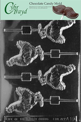Cybrtrayd Life of the Party A019 Rooster Lolly Chocolate Candy Mold in Sealed Protective Poly Bag Imprinted with Copyrighted Cybrtrayd Molding Instructions