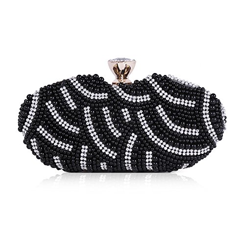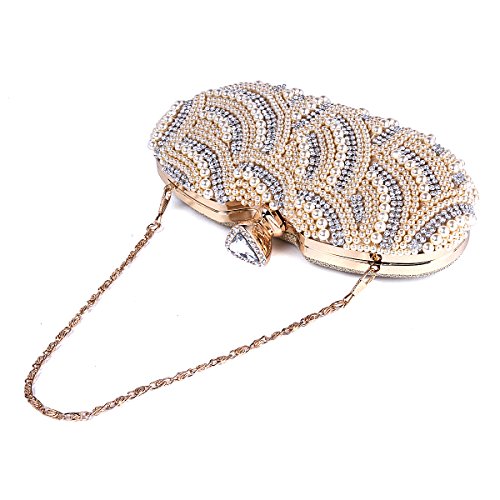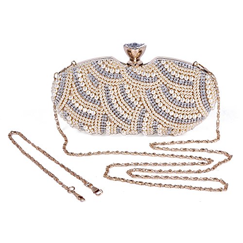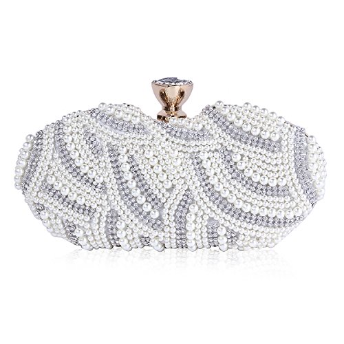 Product Description The evening clutch surface is consists of faux pearl and sparkling rhinestone,beading is all hand sewn,makes you stand out in a crowd.You can optional hand or shoulder straps with two metal chains of various lengths.Interior has a satin lining and one side pocket for your iphone,cash,lipstick and so on.Short chain length:39cm/15.3inches,long chain length:120cm/47.2inches.Dimensions:19cm*9cm*5cm(inches:7.5inches*3.4inches*2.15inches) 0
