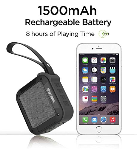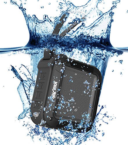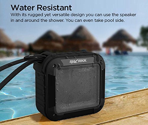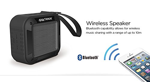 -. Binding : Electronics -. Brand : SHARKK -. EAN : 0646437697026 -. Feature : Solidly built with a red design and a 3W passive subwoofer / Comes with Bluetooth capability and AUX in port for hands free phone calls. / Comes with strap for maximum portability and a waterproof frame protects against mild rain and dust / Continuous, uninterrupted playtime---up to 8 hours with a full recharge in 5 hours. / Compatible with Apple®, Android/Windows smartphones, iPads and most Bluetooth devices. -. Label : SHARKK -. Manufacturer : SHARKK -. PackageQuantity : 1 -. ProductGroup : Speakers -. ProductTypeName : SPEAKERS -. Publisher : SHARKK -. Studio : SHARKK -. Title : SHARKK® Cube Waterproof Bluetooth Speaker 3W IPX5 Shower Speaker Wireless Portable Speaker -. UPC : 646437697026