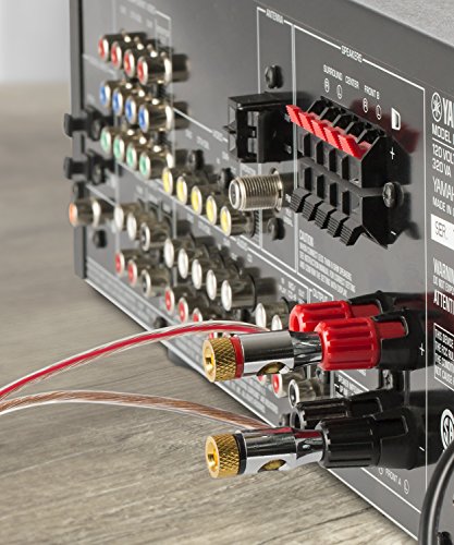 -. Feature : AWG, Oxygen-free copper (OFC) speaker wire to connects from home, automotive, business, ect... power amplifiers & audio A/V recievers to speakers. / Bare premium OFC, High-strand count, providing clearity, high quality and undistorted sound from your audio equipment. / Flexible clear PVC Jacket with red streak polarity for fast, east and accuracy installations. / Easy dispensing and storage; speaker wire is wrapped around plastic spool for manageable use. / Compatible with bare wire connectors, banana plugs, spade tips or bent pin connectors, professinal sound applications and many more.
