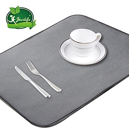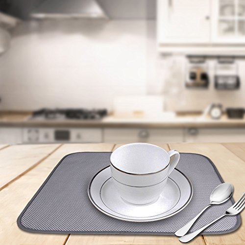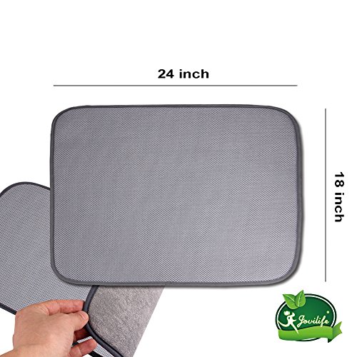 Jovilife Dish Drying Mat Kitchen Mat(set of 2) Microfiber Absorbent Washable, 18*24 Inch, Grey