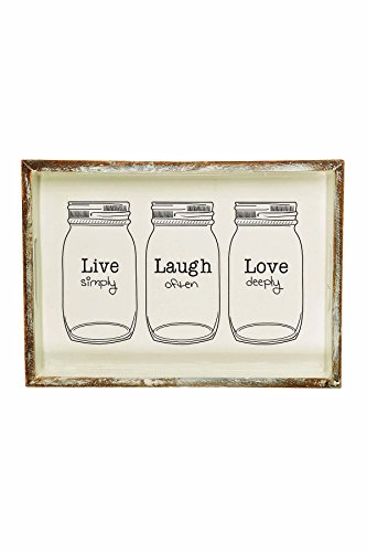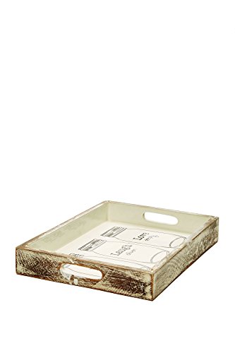 Madhu's COLLECTION MG786-3217 10" x 14" Distress White Finish Mango Wood Tray with Decal Enamel by Mg Decor