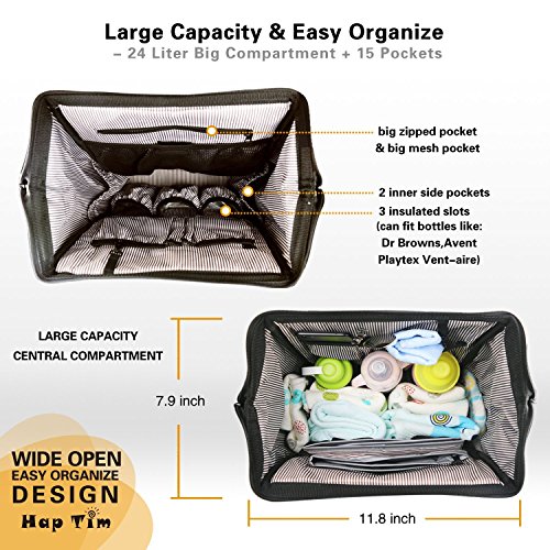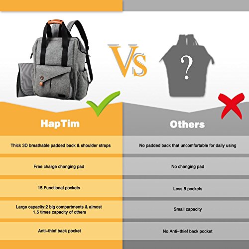 For The On-The-Go Parent (Or Sitter) Who Wants A Reliable Handsfree Functional Diaper Bag! For She/He Who Also Consider These Features of Bag: Large Capacity -- Insulated Bottle Holder -- Padded Straps -- Stroller Straps -- Big Compartments -- Strong & DurableNow,Hap Tim come out this backpack diaper bag fully meet with market demand,It is not just a cute designer tote bag,but also a practical roomy stroller bag organizer !STYLISH! - The special shape design of front pockets cover is very cool,totally on-trend at the moment.