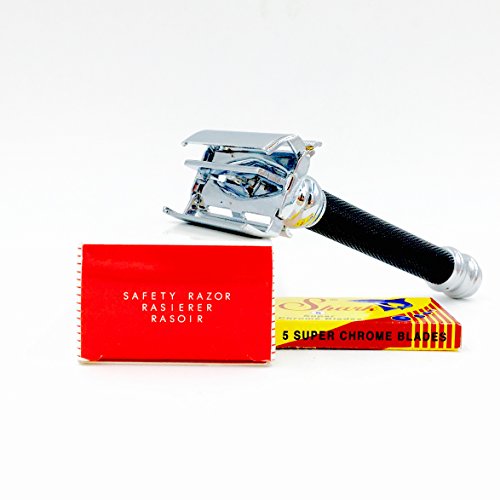 -. Feature : Twist-To-Open design for Easy Blade replacement / Frame is 100% Brass for Durablility / 3.75 Inch Long Textured Handle - Provides a sure grip, even with wet and soapy hands / Shark Super Chrome Double Edge Blades Included / A Genuine Parker Safety Razor product! For over 40 years, Parker razors have been imitated, but never duplicated!