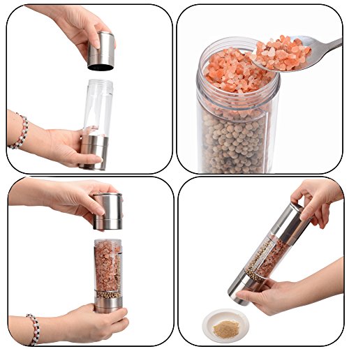 Haomacro Stainless Steel Hand Operated Salt and Pepper Mill/Grinder with Adjustable Ceramic Mill