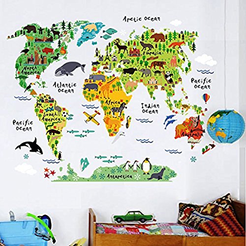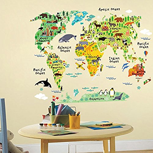 -. Binding : Kitchen -. Brand : Rurah -. Color : As description -. EAN : 6704175630355 -. Feature : Package information:1*pcs / Suit for:Home decor / Size:23.62*35.43inc / Material:pvc / Play and learn - Quick, what animals live in Antarctica? Asia? South America? Take a trip around the world and learn more about its animal inhabitants with the Animal World Map wall decal. It gives your home a fresh look and creates a relaxing atmosphere -. Label : Rurah -. Manufacturer : Rurah -. MPN : 1Rurah -. PartNumber : 1Rurah -. ProductGroup : Home -. ProductTypeName : HOME -. Publisher : Rurah -. Size : As description -. Studio : Rurah -. Title : Rurah Wall Mural ,Multicolor Animals World Map Wall Decal Sticker Removable Home Decor Art Kids For Nursery Room