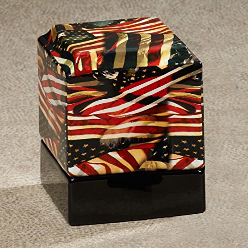 American Flag Funeral Cremation Urn for Human Ashes, Patriotic Memorial Cremation Urn, , Made in the USA of Ceramic; Hydro-Dipped w/American Flag Wrap, Adult Size