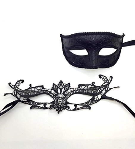 -. Feature : Laser Cut Masquerade Mask / Size: One Size fit Most / Materials: Made of Paper Mache for His and Lace for Hers / Perfect for Masquerade, Mardi Gras, Wedding, Prom, and Costume Party!