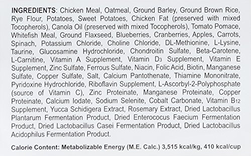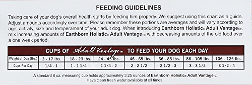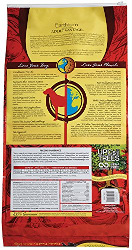 Earthborn Holistic Adult Vantage Holistic Food for Dogs is designed for maintenance of normally active adult dogs. Quality animal proteins such as chicken meal and whitefish meal help build and maintain your dog's lean muscle mass. Thoughtfully chosen whole food ingredients including oatmeal, barley and brown rice are easily digested; the fiber helps maintain a healthy intestinal tract. Proper levels of calcium and phosphorus help ensure that your dog will get the right mineral balance to build strong teeth and bones. Beta-Carotene along with vegetables and fruits help support a healthy immune system. L-Carnitine helps convert body fat into muscle and energy supporting your dog's lean muscle mass and overall body conditioning. Earthborn Holistic pet food is made in our own kitchens in the US. Packaging is BPA free and 100% recyclable through TerraCycle and our Earthborn ReBorn program.Feature