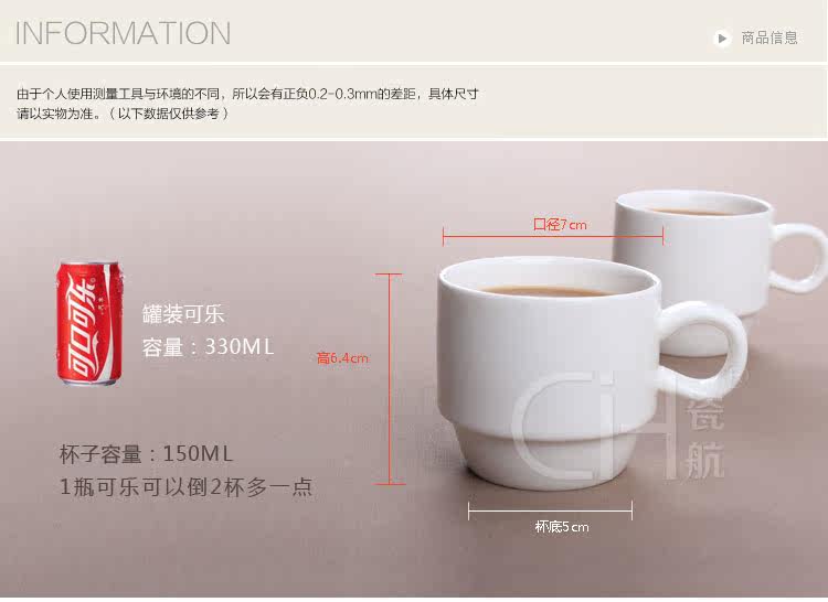 瓷航咖啡杯陶瓷小杯红茶杯牛奶杯早餐杯创意咖啡厅酒店杯150ml