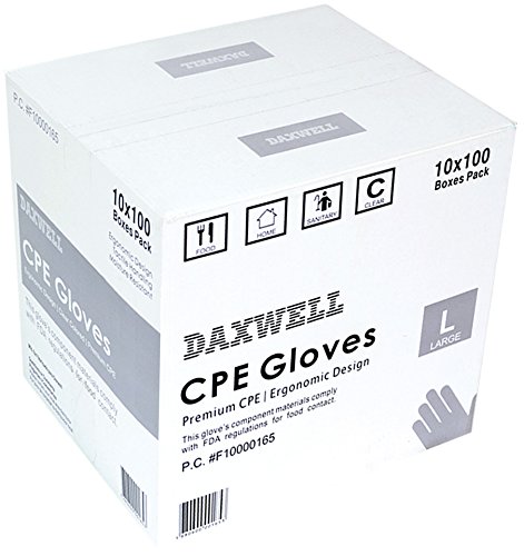 Daxwell Embossed Premium Cast Polyethylene (CPE) Food Service Gloves, Powder Free, Large (10 Boxes of 100 Gloves)