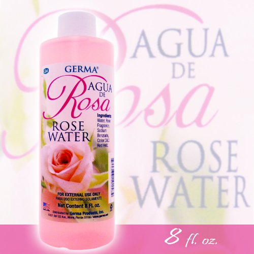 -. Binding : Misc. -. Brand : Germa -. EAN : 0790933101584 -. Feature : Rose Water (Agua de Rosas) / FOR EXTERNAL USE ONLY. / 4 Fl. Oz. / MADE IN USA -. ProductGroup : Beauty -. ProductTypeName : BEAUTY -. Title : ROSE WATER Agua de Rosas Flower Water Skin Face Facial toner Cleanser 8 Fl. Oz. -. UPC : 790933101584