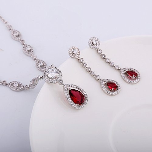 -. Title : GULICX Silver Plated Base Ruby Color Red Jewelry Set Necklace Earrings Women Wedding Party
