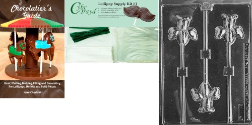 Cybrtrayd 45StK25GRBk-F035 Daffodil Lolly Chocolate Candy Mold with Chocolatier's Bundle, Includes 25 Lollipop Sticks, 25 Cello Bags, 25 Green Twist Ties and Chocolatier's Guide