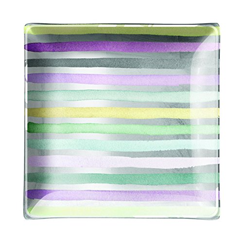 FRINGE STUDIO 511310 "Green Water Stripe Square" Tray, 4.5 x 4.5"