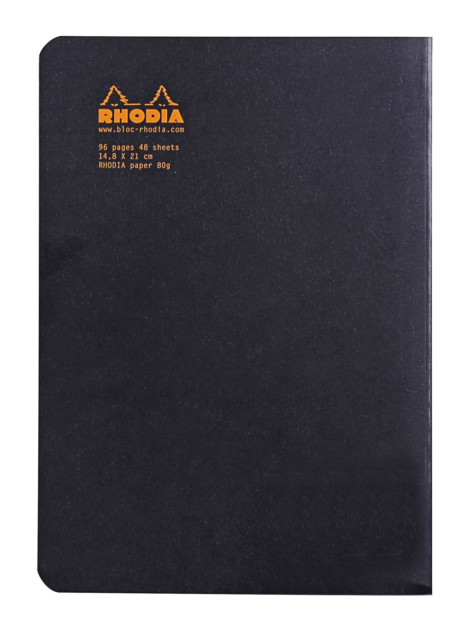 Rhodia Black Side Stapled Notebook. 148X210 48S Lined 119189C