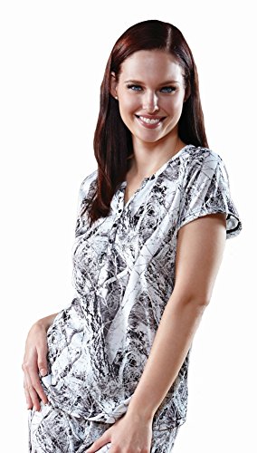 -. Feature : V-neck lounge shirt / 3-Button placket / Cap sleeves / Form-flattering shirt / Naked North licensed product