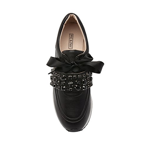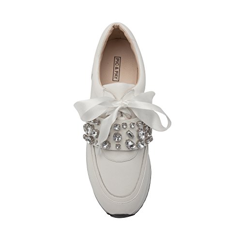 Binding : Apparel Product Description Hello ORIEL! A sport-inspired glam leather fashion sneaker with a jeweled vamp, satin laces and two-tone cushioned sole. Style with leggings or joggers to capture the ath-leisure vibe or pair with denim for a easy casual cool. PIC PAY designs and manufactures fashion footwear with the shoes you love, the comfort you crave and a price that won't make you think twice about picking two pairs. Shop our full collection to find everything from the latest seasonal looks in boots, sandals and sneakers, to today's wear-to-work essential flats, loafers, and pumps. Each shoe is made with quality materials, and designed with on-trend details to compliment your unique sense of style. Comfort. Quality. Style. PIC PAY is fashion footwear your way. 0