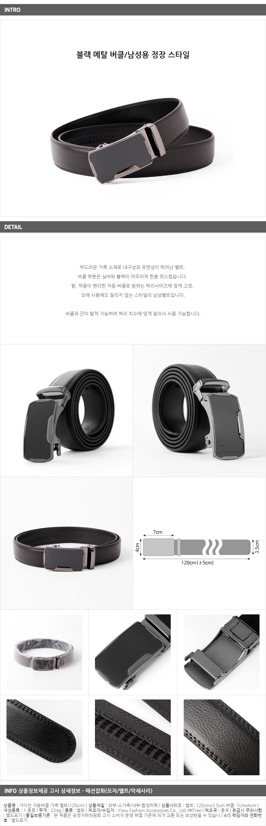 <상품명 : ZP8 가디언 자동버클 가죽 벨트(125cm)>