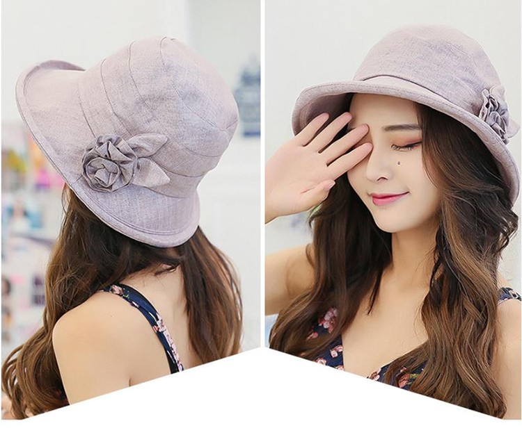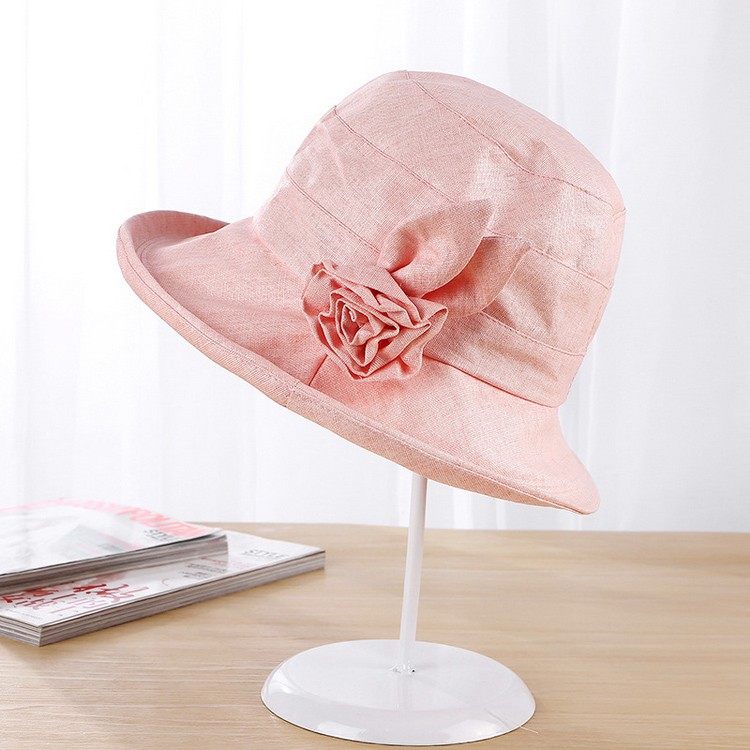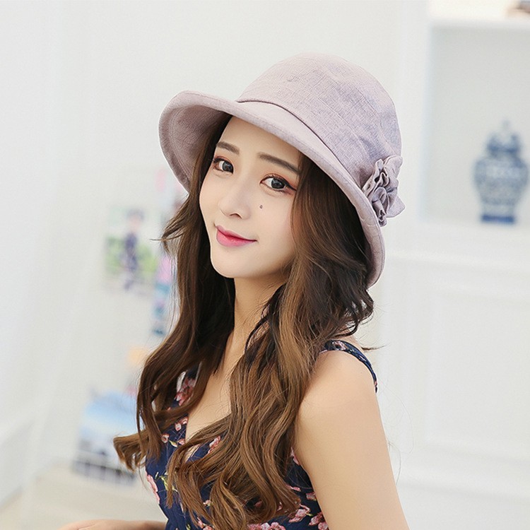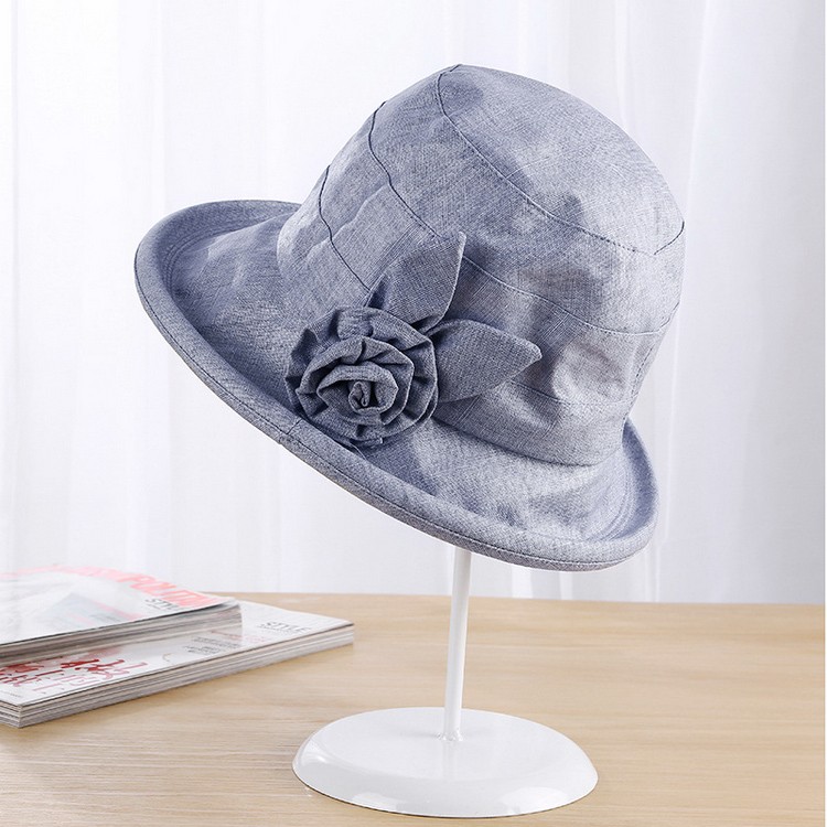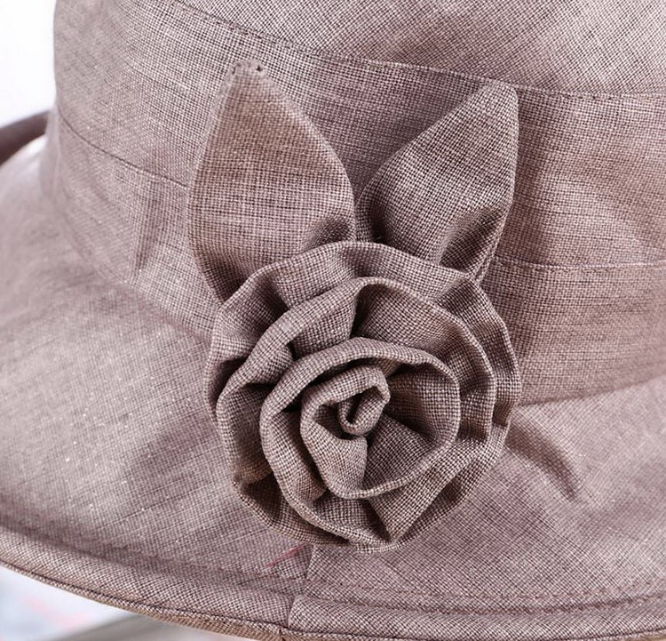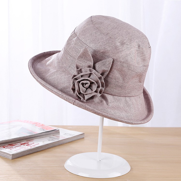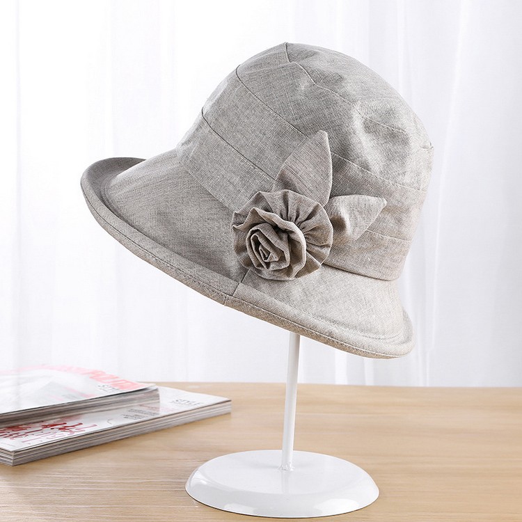 深めにかぶれ、フィットしやすい!サイドのコサージュが目を惹きます。