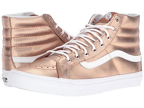 Vans Unisex Sk8-Hi Slim Skate Shoe (6.5 B(M) US Women / 5 D(M) US Men, (Metallic) Rose Gold/True White)